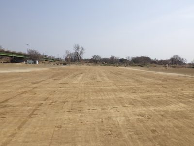 河川敷のため、常時、強風と砂埃が舞う中での作業となりました。